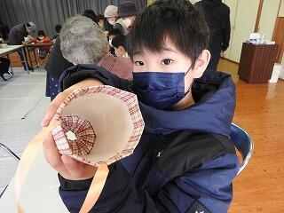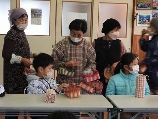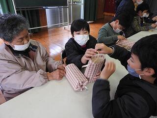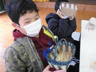 地域の方が作られた「小物入れ」のかごが児童一人一人に