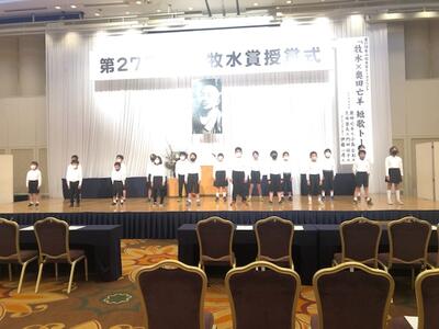 昨日(2月21日)、宮崎観光ホテルで「第27回若山牧水賞授賞式」がありました。その冒頭において、本校児童が若山牧水の歌や短歌を発表しました。