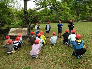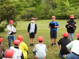 校長先生から、1年生の歓迎はもちろんのこと、同じ学年、違う学年みんなが仲良く過ごして、全員が「楽しかった!」と言える遠足にしてくださいと話があったあと、交通安全に気を付けながら牧水公園に向かいました。