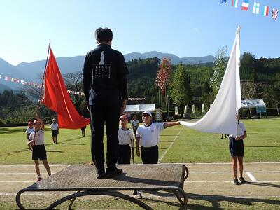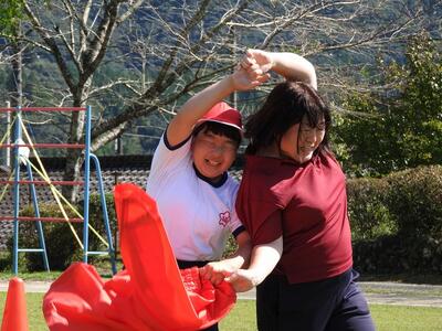 とても良い天気に恵まれ、運動会を行うことができました。地域の方々もたくさん参加してくださり、大変ありがたかったです。地域に伝わる臼太鼓踊りも披露することができました。子ども達の練習の成果が立派に発揮できた運動会になりました。