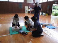 坪谷小のみなさん、水着の準備はできましたか。校内では、毎年、職員を対象にした救命救急法講習を実施しております。
