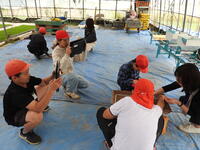 近くのビニールハウスは、温かい空気でいっぱいでした。実際に種をまく間、子どもたちは、説明にあったとおり、重ならないようにまきました。丁寧に作業を進めながらも、お友達同士で会話が弾みます。体験的な学習にはそんなよさがあるのですね。