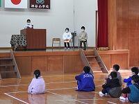 1年生もお兄さん達を見習って、あいさつしたり短歌を口ずさみます。今はまだお兄さん達の真似ですが、「学ぶ」は「まねぶ、まねる」から始まります。そのうち自然とあいさつも短歌の朗詠も自信をもってできる日が来ることと思います。がんばれ!1年生。