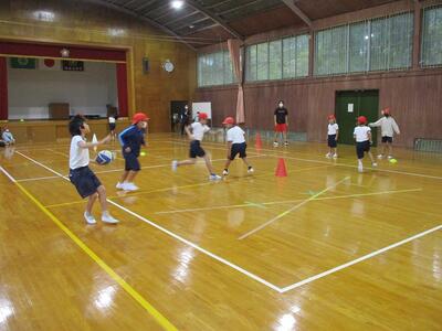 今日の体育は、雨がぱらついていたので体育館ですることになりました。