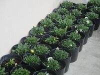 今日は風もなく、晴天だったので、花のひな壇を校舎の幅いっぱいに写真のように並べました。なかなかの景色で、しばらく見とれていました。満開になった時は、ぜひ興味のある方はご覧いただければと思います。