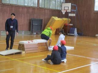 体育館では、とび箱遊びに下学年が取り組んでいました。