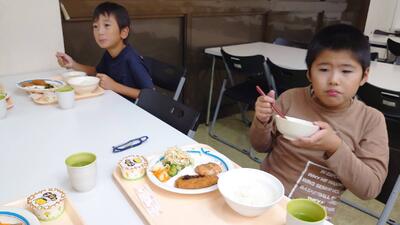 途中までだったとは言え、山登りを終えた子どもたち。おなかはすごく空いていたようです。あっという間にたいらげてしまいました。全員完食です!素晴らしいですね!