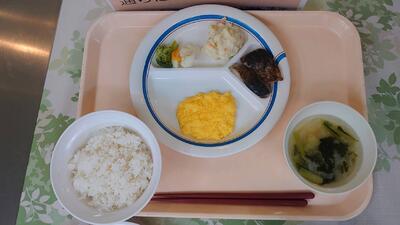 朝のつどいの後は朝食です。今日のメニューは、下の写真の通りです。とてもおいしかったです!