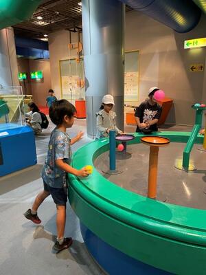 科学技術館には、たくさんの展示物があります。自由に展示物を見学したり、体験したりしました。