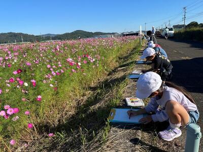 11月6日(水)にコスモス鑑賞会を行いました。校区内の国道10号沿いの畑まで歩いて行きました。
