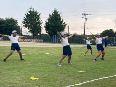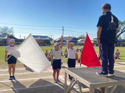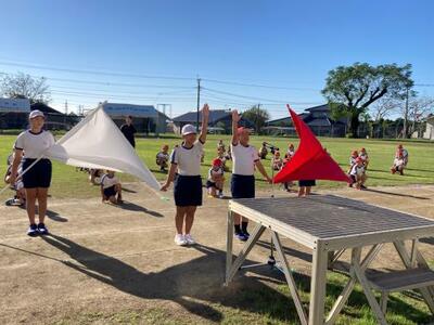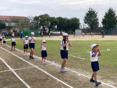 予行練習では、開会式や閉会式の動き、徒競走・リレー・団技などの入退場の仕方などを確認することができました。特に、各種目での係の動きを確認することができました。運動会当日は、見通しをもって活動できるのではと思います。