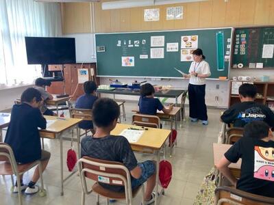 10月1日(火)、学校給食センターの栄養教諭の先生に来ていただき、食育の授業をしていただきました。今回は、家庭科の学習で、「だし」の大切さを学びました。