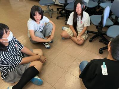その後でいくつかゲームも行いました。自分の背中に張られたカードの言葉をグループの友達に質問をして当てるゲームでは、苦戦してる友達に思わずヒントを率先して与えている様子も見られました。
