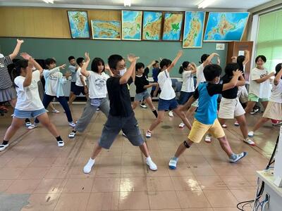 少し時間が余ったので、それぞれの学校で運動会の最後に踊るソーラン節を一緒に踊ってみました。微妙に違うところもありましたが、ほとんど同じ振り付けで息の合ったそのかけ声や迫力ある踊りに思わず先生たちみんなで大きな拍手を送ったことでした。本番での披露が楽しみです。