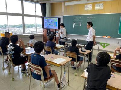9月30日(月)、5年生がバスに乗って美々津小学校へ行きました。そして、むかばき宿泊学習に向けての事前学習会を実施しました。
