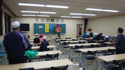 下山後に、お弁当の分別作業をしました。その後、部屋に入る説明を受けました。みんなしっかりと話を聞いていました。