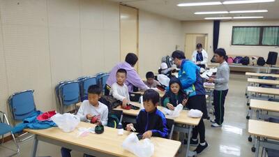 ちょうど運動会前なので赤団と白団(宮崎県ではこう呼びます)に分かれて応援内容などの情報交換もしました。