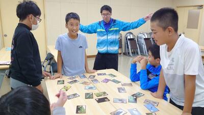 かるたは、「みやざきいきものカルタ」です。このカルタは、コシジロヤマドリやミサキウマなど、宮崎県に生息する生き物を題材にしたカルタです。