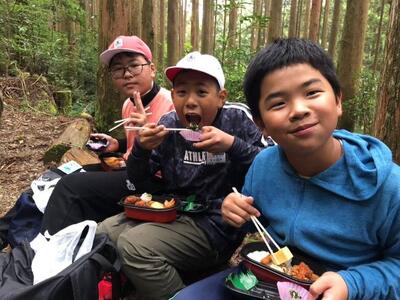 途中のポイントである県民の森の所でお弁当を食べました。そして、そこから下山となり、途中雨が降りましたが、14時40分に全員下山することができました。