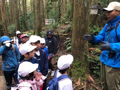 開講式の後は、いよいよ登山です。安全第一でむかばきの山を登ります。