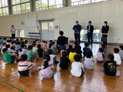帰る前に、全校児童に対して連休中の過ごし方について生徒指導の先生から