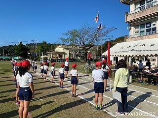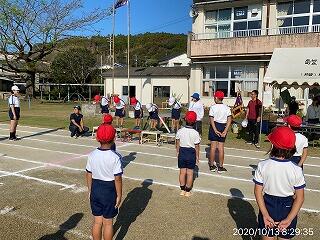 1年生にとっては、小学校での初めての運動会!今年度は、コロナ禍対応の運動会となっており、「スポーツフェスティバル」と称して行います。高学年の子どもたちも係の動きを確認しながら、プログラムを進めていくことができました。