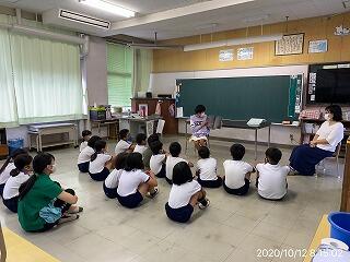 2年生の教室をのぞくと、保健室の先生が子どもたちに「目の大切さ」について話していらっしゃいました。