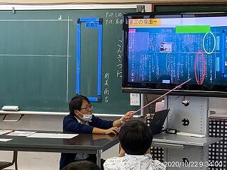 研究授業の教科は、国語でしたが、ICT機器を使った前時までの振り返りや、板書の工夫など、先輩の先生方にも大変参考となる授業でした。