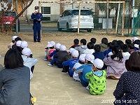 避難した後、消防署の方々から、火事のことや、はたらくいきがいについてお話を聞くことができました。