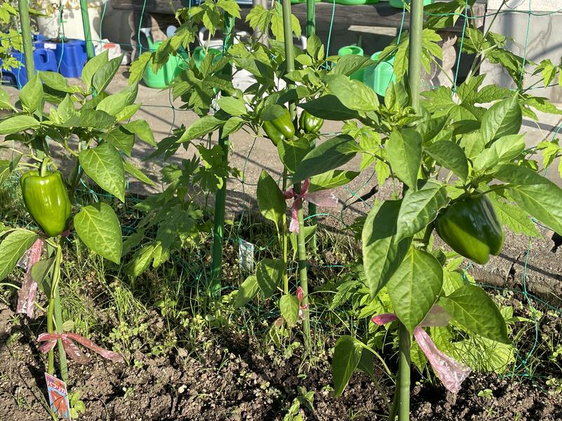 ピーマンは、暑い中でも日光を浴びて気持ちよさそうです。