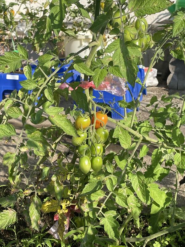 3年生が花壇で育てている野菜たちが、大きく、青々と茂っています。