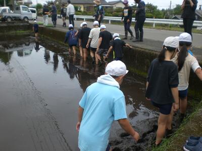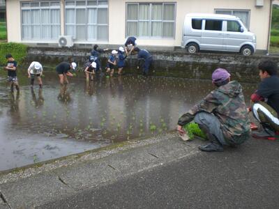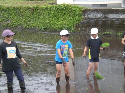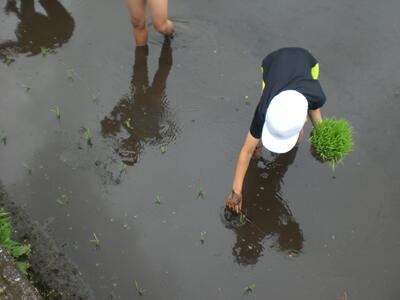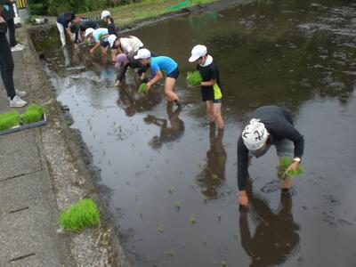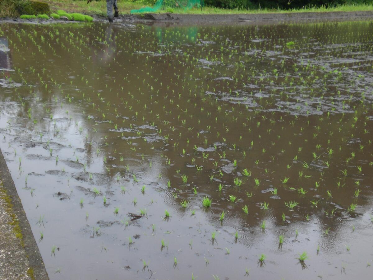 秋にはたくさんの稲穂が実るよう、5年生の児童がこれから観察や草取り等のお世話をがんばってくれることでしょう。水の管理や見守り、追肥、病害虫防除など、子どもたちが見ていないところでたくさんのお世話をしてくださってることにも気付いていけるといいですね。
