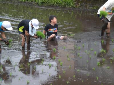 ハプニングいっぱいの田植えでしたが、大人も子どもも笑いに包まれて