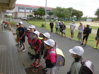登校してきたら、玄関前に整列。