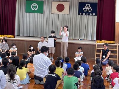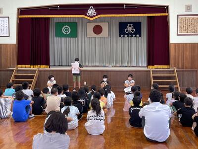 平和についてのお話から、命を大切に夏休みを過ごしてほしいことについてお話があり、子ども達も真剣に聴いたり、考えたりしていました。
