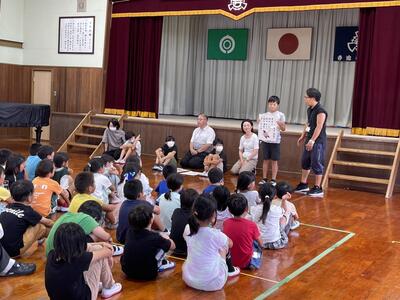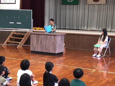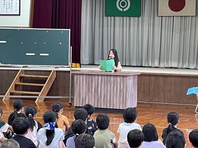 始めに、2・5年生の代表児童が1学期頑張ったことについて作文発表を行いました。