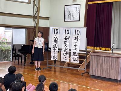 その後、校長先生のお話がありました。夏休み中の時間を大切に使うためには、どのような過ごし方をしたら良いか。