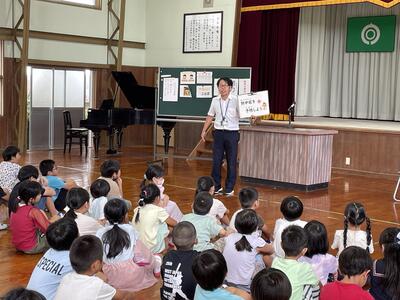 熱中症予防のために「のむ・たべる・ねる」をしっかり行うこと、体を、そして命を大切に2学期も頑張ってほしいことを子ども達に伝えました。