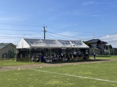 練習の途中では、熱中症対策のためテントに入っての水分補給休憩もしっかり行っています。