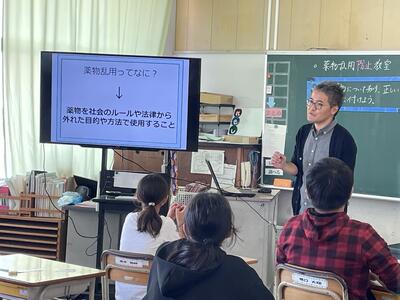 11月27日(月)、6年教室で薬物乱用防止教室が行われました。今回は、学校薬剤師の先生から薬の正しい飲み方や薬物の危険性、上手な断り方について学びました。断り方では、方法として「話題を変える」「同じことばかり言う(壊れたラジオ作戦)」「逃げる」などどのようにして危険を回避できるかについても教えていただきました。