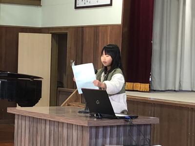 式のはじめに、1年生と4年生の児童が2学期をふり返って作文発表をしてくれました。