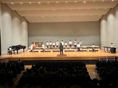 第2部の「島唄三線ライブ」では、三線の音色が寺迫小の講堂に心地よく響きました。