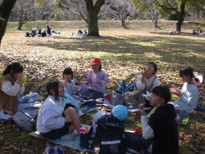 お別れ集会の後は、歩いて移動して石並川キャンプ場へ行き、お別れ遠足を行いました。石並川キャンプ場でのお別れ遠足は5年ぶりの実施でしたが、暖かな日差しの中、全校で楽しく過ごすことができ、また6年生との楽しい思い出を作ることができました。1日1日と卒業の日が近づいてきていますが、今日のお別れ集会・お別れ遠足は子ども達にとって忘れられない思い出になった事と思います。