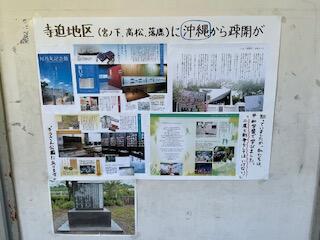 戦時中、沖縄県から子どもたちが寺迫地区にも疎開していたとのことです。そのことを、高松運動公園にある「南風原学童疎開記念の碑」が伝えてくれています。これからも歴史をしっかりと学び、「二度と戦争をしてはいけない」と決意することが大切だと思います。
