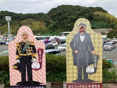 観光地によくある歴史的人物の看板に顔を入れてみたり、みんなで記念写真を撮ったりしました。
