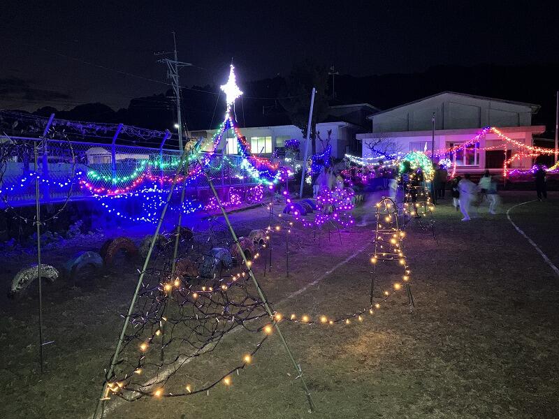 これから1月4日までの夜の間、寺迫小学校にはイルミネーションの灯がともります。