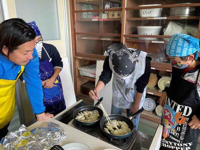 その後、実際に宮崎の美味しい豚肉を使って「手作りぎょうざ教室」も行われました。専用の機械を使って上手にぎょうざを包み、どの班も美味しそうな手作り餃子が完成していました。