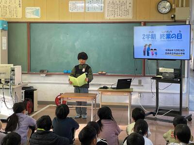まず始めに、代表児童が2学期頑張ったことについて作文発表してくれました。