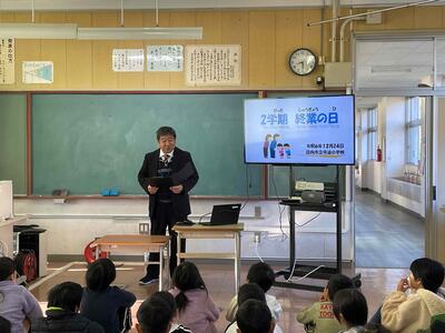 次に、校長先生のお話では、スライドショーで2学期を振り返りながら79日間の中でたくさんの経験を通して、一人一人がとても成長することができた2学期だったとお話がありました。
