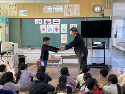 最後に、2学期に運動や作文、短歌、絵画、スポーツ少年団などで頑張ったみなさんの表彰が行われました。